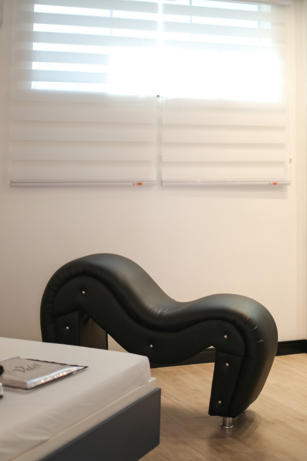 Poltrona erótica, “X” sado com algemas, ar condicionado, calefação, frigobar, canais eróticos, espelho de teto, canais de som com entrada USB, internet Wi-Fi, TV smart, secador de cabelo, chuveiro de teto e garagem privativa.